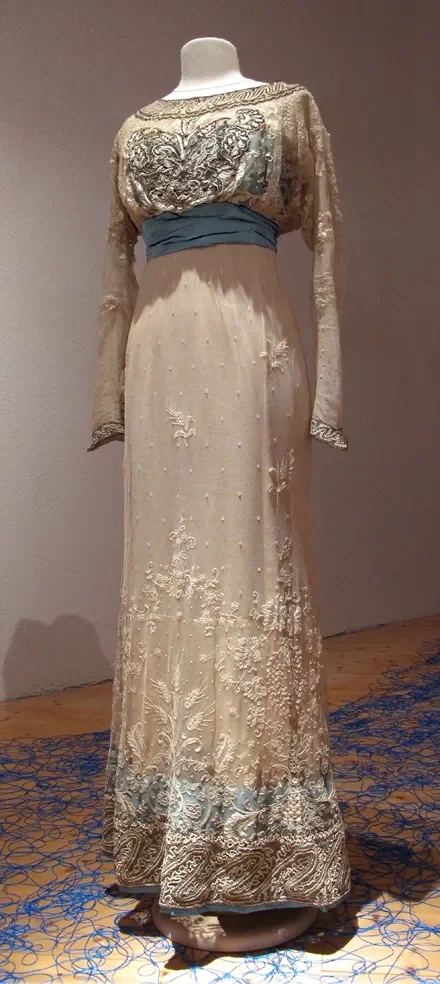 L’abito qui presentato uscì dagli atelier di questa grande maison di couture nel 1912. È un esempio perfetto dell’uso del ricamo di Lunéville da parte delle case di moda dell’epoca. Conservato nelle collezioni del Museo di Wesserling (nel sud dell’Alsazia), offre un magnifico esempio dell’eccellente lavoro delle ricamatrici di Lunéville.